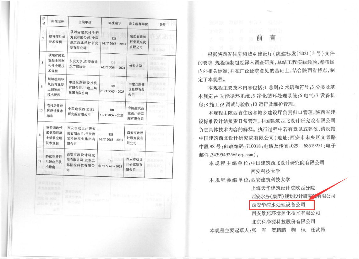 華浦環保 | 熱烈祝賀我公司參編的陜西省《景觀水體循環及處理技術規程》工程建設標準正式發布實施