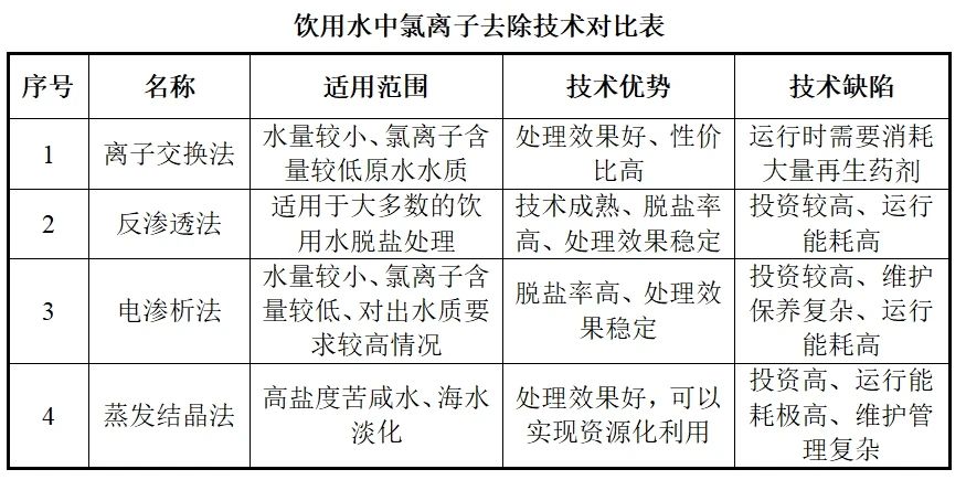 (2)水源特性:水源的水質特性對氯離子去除技術的選擇有很大影響。例如,水源中的氯離子濃度、pH值、溫度、共存離子等都會影響技術的適用性。